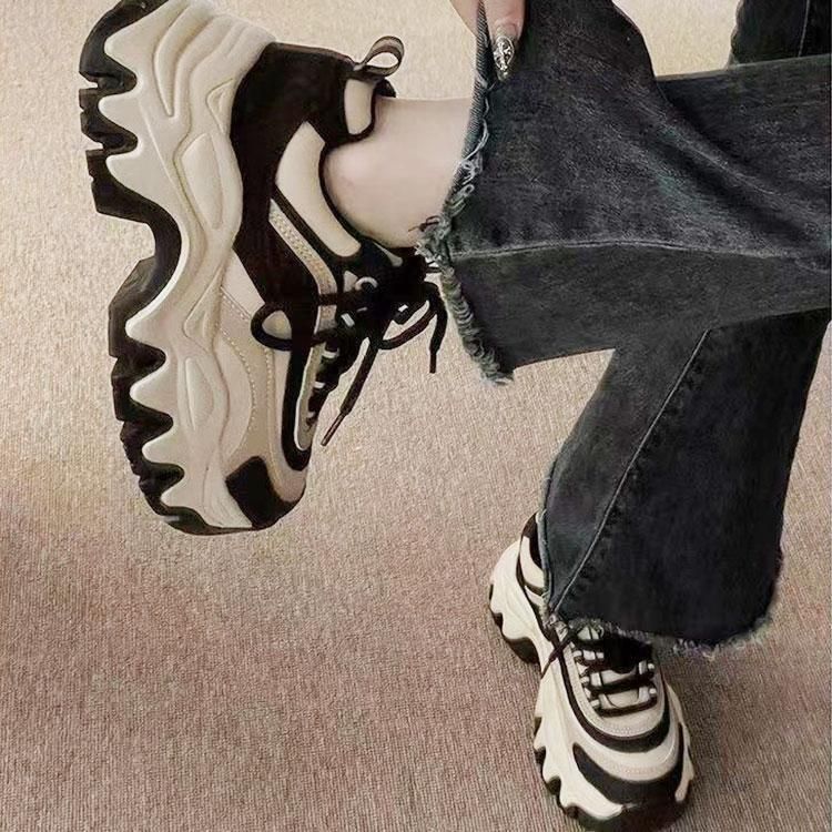 トレンドのダッドスニーカーデザイン。スタイルアップ効果も◎長時間履いても疲れにくいから日常使いにぴったり。軽量で歩きやすく、カジュアルコーデを格上げ。