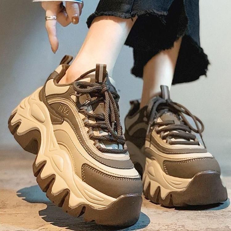 厚底スニーカー レディース 韓国 ダッドスニーカー ごつめ カジュアル シューズ 履きやすい おしゃれ 軽量 疲れない ウォーキングシューズ ブラック ブラウン